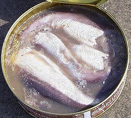 おもむろに缶を全開。いやな感じに変色した魚が現れました(上写真)。恐る恐る鼻を近づけて嗅いでみたら・・・くさっ!くさっ!!!